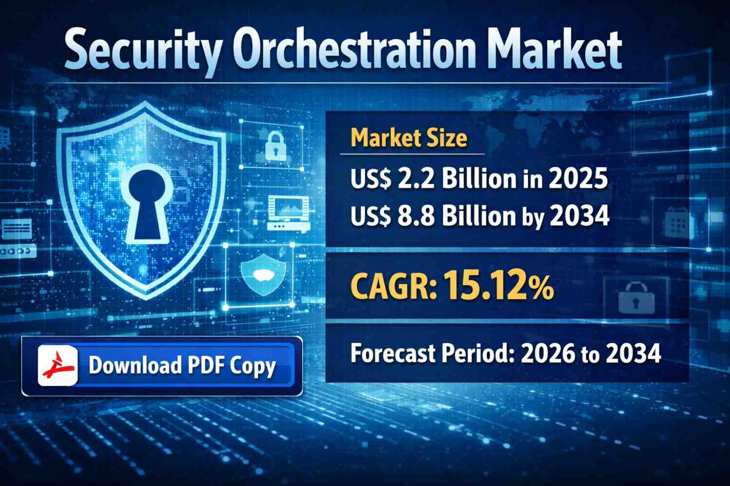 The security orchestration market is evolving rapidly as enterprises increasingly adopt automated cybersecurity solutions to manage complex threat environments. Security orchestration integrates multiple security tools and processes into a unified system, enabling faster incident detection and response. The global Security Orchestration Market size is projected to reach US$ 8.8 billion by 2034 from US$ 2.2 billion in 2025. The market is anticipated to register a CAGR of 15.12% during the forecast period 2026–2034.