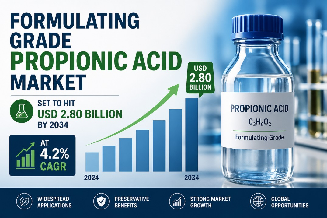 Formulating Grade Propionic Acid Market Set to Hit USD 2.80 Billion by 2034 at 4.2% CAGR